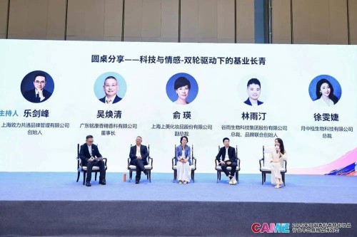 论坛的压轴环节是一场思想激荡的圆桌讨论,主题为“科技与情感-双轮驱动下的基业长青”。在主持人的引导下,广东铭康香精香料有限公司董事长兼总经理吴焕清、上海上美化妆品股份有限公司副总裁俞瑛、谷雨生物科技集团股份有限公司总裁兼品牌联合发起人林雨汀、月中桂生物科技有限公司总裁徐雯婕四位嘉宾,就如何平衡与融合科技硬实力与情感软连接展开了深度对话。