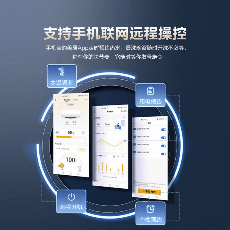 依托先进的手机联网技术,随时随地可以对电热水器进行远程操控,实现管理省电模式。此设计让生活更为灵活,也为每个家庭提供了环保节能的新选择,在享受温暖时,不忘呵护环境。